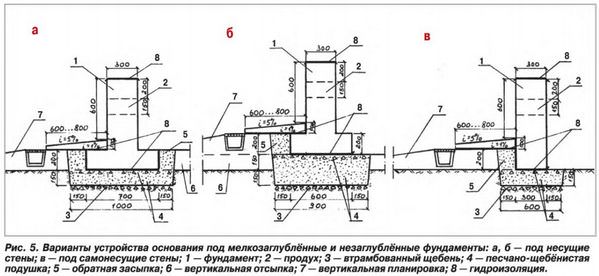 Так строить можно, но можно строить и лучше. Рассмотрим достоинства и недостатки варианта ленточного незаглублённого фундамента (рис. 1).