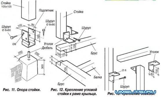 Узлы и отдельные элементы домика показаны на рис. 3-13. После монтажа каркаса крыльца можно приступать к установке длинных стропил.