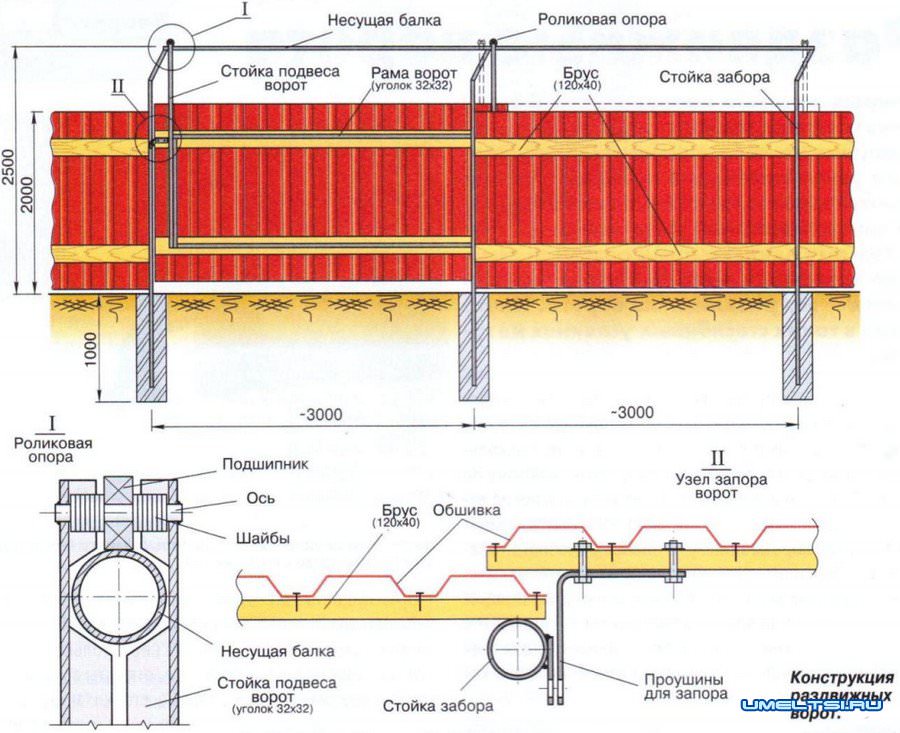 Конструкция раздвижных ворот своими чертежи