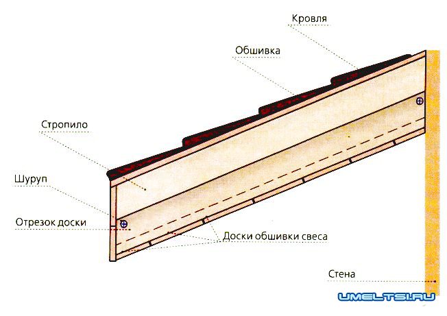 Подшивка свесов кровли по стропилам