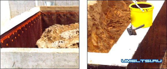 При этом применяют один из нескольких видов материалов. Так, при использовании рулонных битумных изделий (оклеечная гидроизоляция) важно проследить, чтобы их слои не были повреждены при укладке. Применяют и плоские мембраны, но лучше всего мембраны с армированной основной. Их настилают с нахлестом в 10-15 см> места соединений склеивают или сплавляют. Битумно-полимерные мастики (обмазочная гидроизоляция) на поверхность наносят при помощи кисти, валика или шпателя, и после высыхания они образуют эластичную водонепроницаемую пленку. Специалисты рекомендуют комбинировать материалы: сначала нанести слой обмазочной гидроизоляции, затем закрыть поверхность двумя-тремя слоями оклеечной.