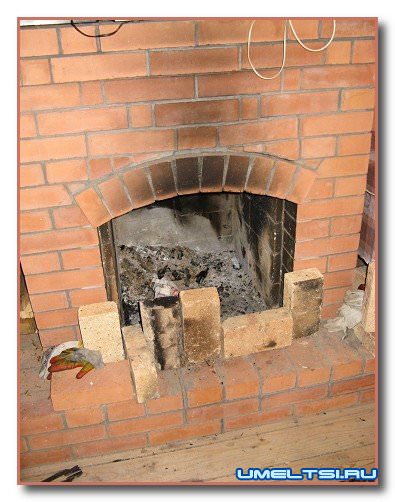 На заднюю часть печи (если смотреть со стороны дверок) уложен стальной 10-мм лист шириной 550 мм и длиной на всю ширину печи. Этот лист служит перекрытием топки и дном каменки.