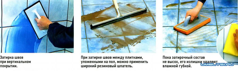 Убедитесь, что красящий пигмент затирки легко удаляется с поверхности плитки. Только после этого можно приступать к работе.