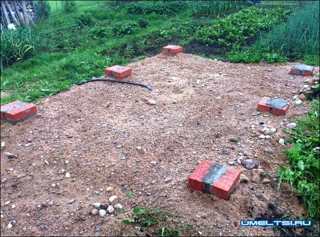 Затем берем кирпич (я использовал красный) и из него делаем сваи. Достаточно 6 штук.