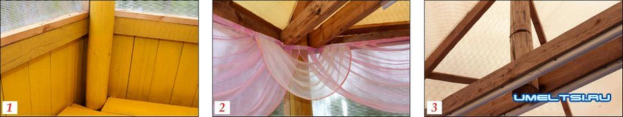 8. На обе горизонтальные поперечины прикрутил энергосберегающие светильники (фото 9) Повесил легкие шторки.