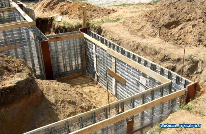 Армировочные сетки допустимо использовать для мелких, узких фундаментов (в целях экономии). В этом случае прут применяют только в качестве распределительной арматуры, то есть стоек, к которым крепится сетка.