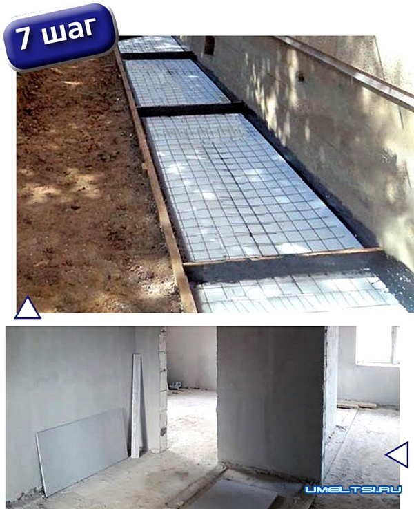 Для сооружения междуэтажного перекрытия использовали комплект инвентарной опалубки, состоящий из щитов прочной водостойкой бакелизированной фанеры, стальных телескопических стоек и других деталей. Монолитные элементы и конструкции создают в блочной кладке теплопроводные «бреши», то есть значительно снижают энергосберегающую способность локальных участков наружных стен. Чтобы компенсировать потери и предотвратить образование мостиков холода, внешние грани монолита облицовывают экструдированным пенополистиролом.