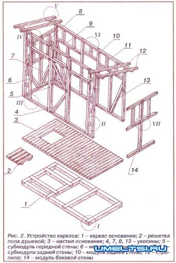 Редкий дачный участок обходится без хранилища для садово-огородного инвентаря и летнего душа, которые нередко блокируют в единую постройку. В настоящее время многочисленные фирмы специализируются на продаже полностью готовых хозпостроек. Действительно, очень удобно — выбрал подходящий образец, оплатил, доставил, установил и пользуйся. Все неплохо, кроме одного — такие услуги для многих пока дороговат. А ведь еще транспортные расходы, да подготовка основания и хотя бы простейшего фундамента потребует определенных затрат.