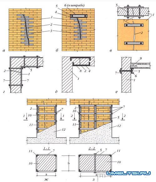 Если разрушение происходит так, как показано на рисунке (это типичный вариант), необходим комплекс мероприятий по усилению просевшего угла.